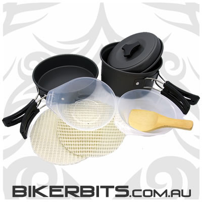 This camp cooking set is ideal for the Motorcycle Camping Rider! It's compact, lightweight and easy to clean which is why it's such a great little cooking set for taking with you on your motorcycle camping adventures.